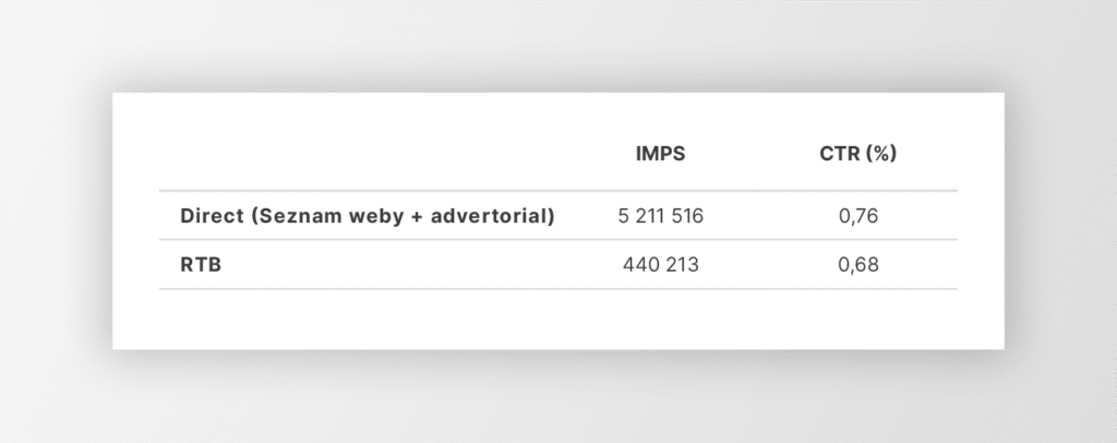 V kontrolní skupině, která reklamu neviděla, dosáhla podpořená znalost produktu 32 %. V RTB cílené skupině se dostala na 36 %, což potvrzuje, že správné cílení dokáže najít relevantní publikum.