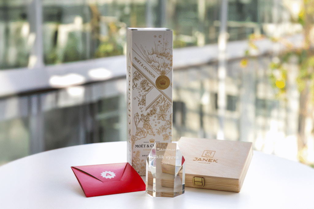 Kromě uznání a nových zkušeností si oba vítězné týmy odnášejí i něco na oslavu: láhev prémiového sektu, luxusní sadu pralinek, dárkovou kartu do vyhlášené sítě restaurací a tradiční skleněnou trofej Sklik výzvy.