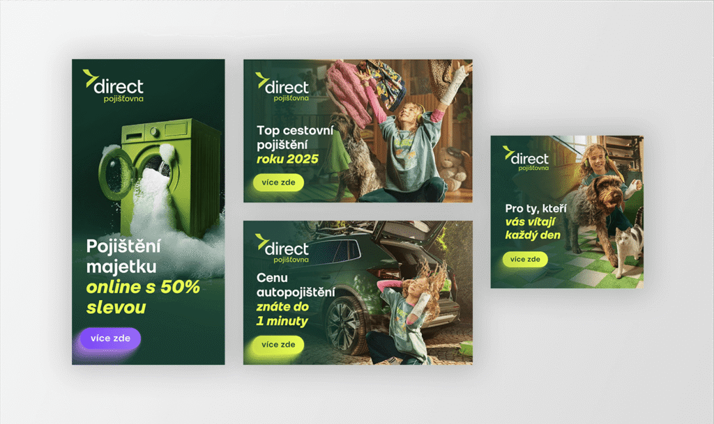 Direct pojišťovna dlouhodobě posiluje svou pozici moderní a zákaznicky přívětivé značky. V kampani jsme propojili brandové i produktové cíle do jedné omnichannel RTB strategie, která plynule vedla uživatele od povědomí k engagementu a podpořila zájem o konkrétní pojištění napříč kanály.