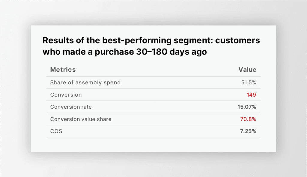 Focus on retargeting segments with longer purchase histories, which are often overlooked. These segments can offer high conversion potential.