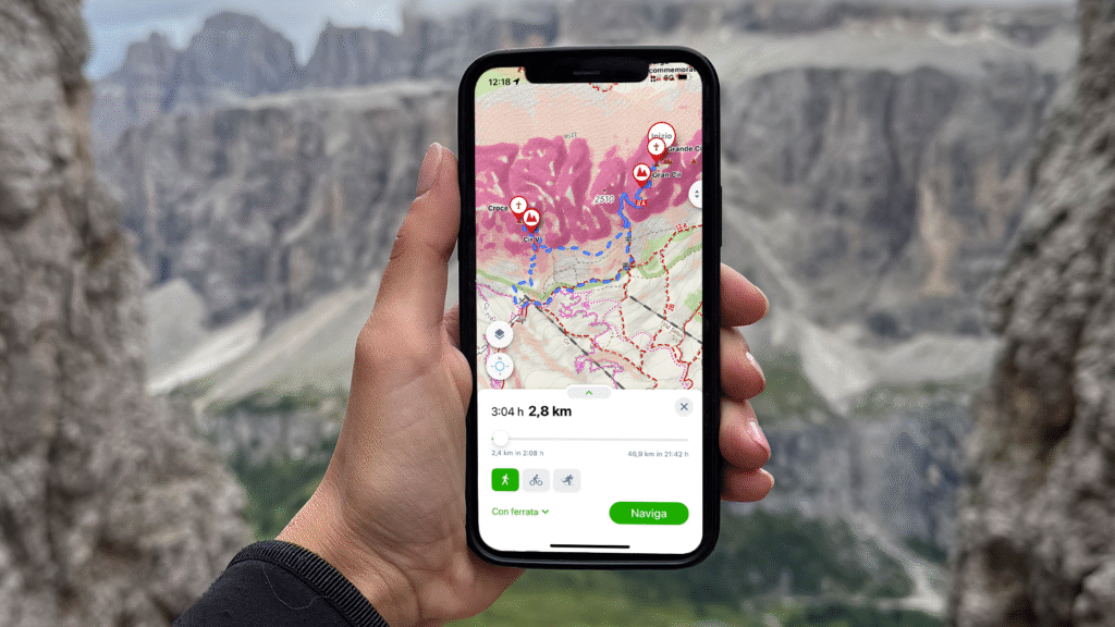 Stiamo portando la pianificazione delle gite a un livello superiore. Potete creare un itinerario circolare a piedi attraverso ferrate, un percorso di corsa, un’uscita adatta al passeggino oppure un tragitto per bici gravel o monopattino sportivo.